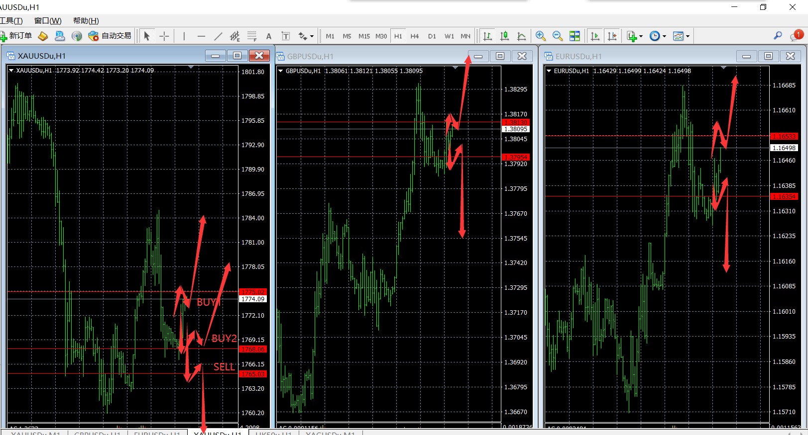 Perhatikan baik-baik strategi di atas, posisi take profit (TP) 1, 2, dan 3, jika harga tidak dapat menembus secara efektif, maka segera ambil posisi jual (jika tidak dapat secara efektif menembus turun maka segera ambil posisi beli). Terapkan stop loss (SL) sebesar 18-23 poin sudah cukup, setelah mendapatkan profit boleh tutup posisi. Cepat masuk dan keluar dari pasar. Ketika perubahan pasar sudah dikonformasi, dapat ubah stop loss dan untuk mendapatkan profit hingga 30-7 poin bukanlah masalah besar.