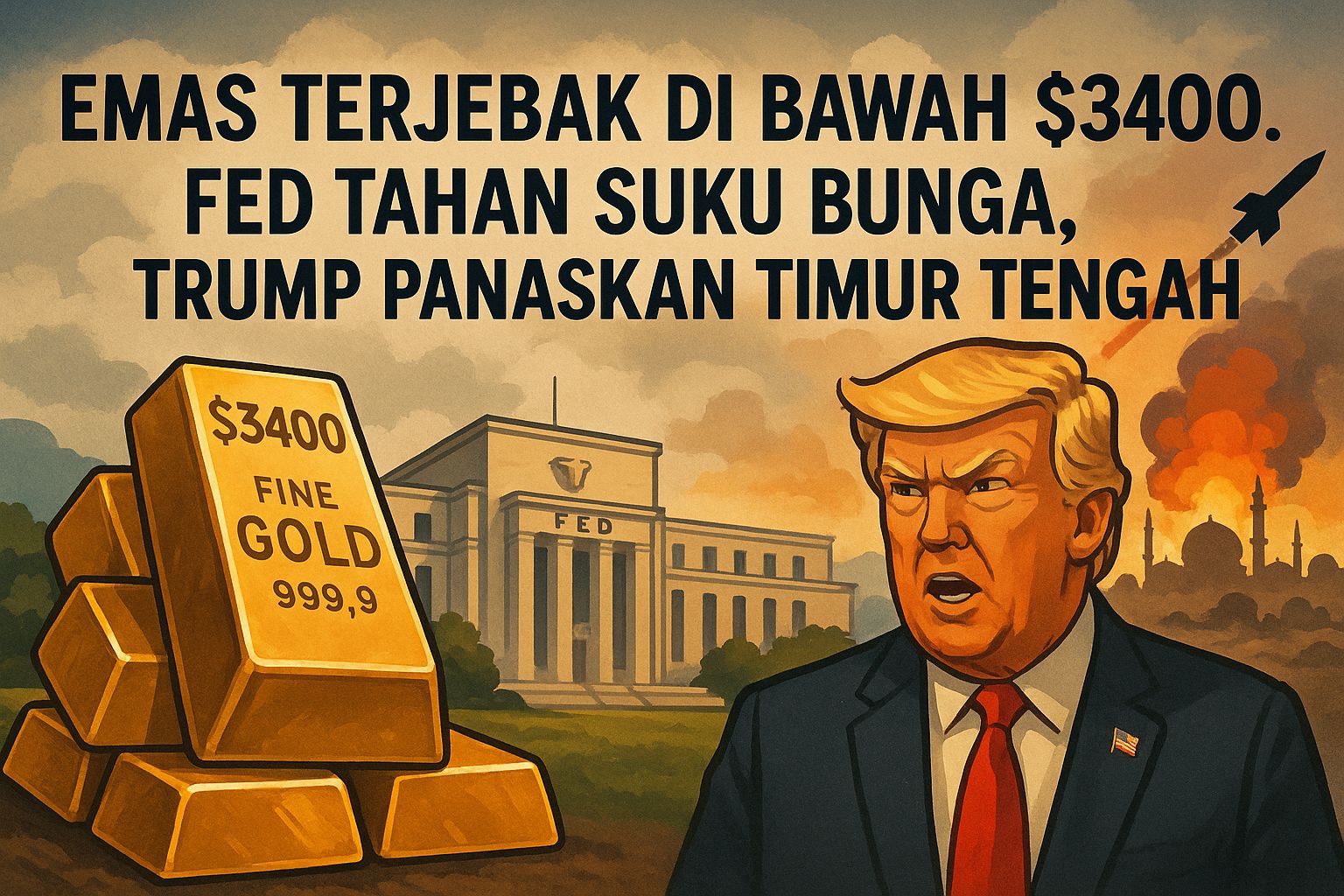 Emas di bawah $3400 pasca the Fed menahan suku bunga. Walau komentar Trump membuat geopolitik semakin memanas.